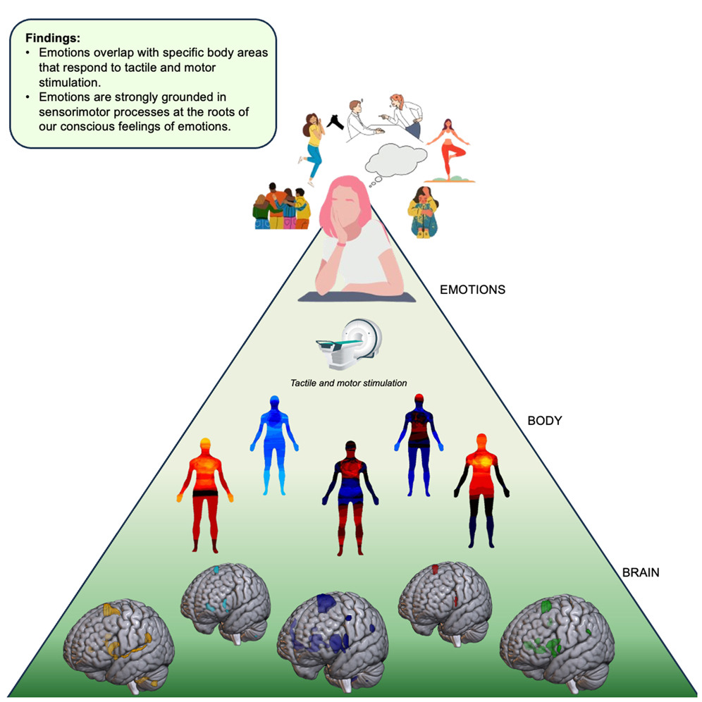 Sovrapponendo la mappa delle aree corticali attivate durante la rievocazione delle emozioni alla mappa delle aree corticali attivate durante le stimolazioni tattili e motorie, i ricercatori hanno scoperto che alcune di esse si attivano con entrambe le tipologie di stimolazione.