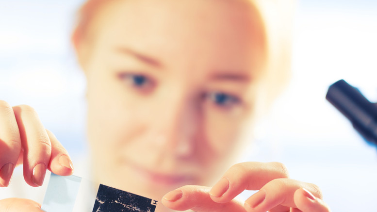 Image credits: Woman in a laboratory with microscope slide in hand (from Shutterstock)